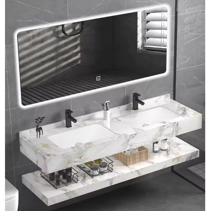 Dvojité povodí klesá marnost nabízí dostatek prostoru pro všechny vaše potřeby péče, což z něj činí ideální volbu pro větší koupelnové prostory nebo pro rodiny, které sdílejí koupelnu. LED zrcadlo přidává moderní dotek a poskytuje dostatečné osvětlení pro holení, make -up nebo jednoduše se připravuje na den.